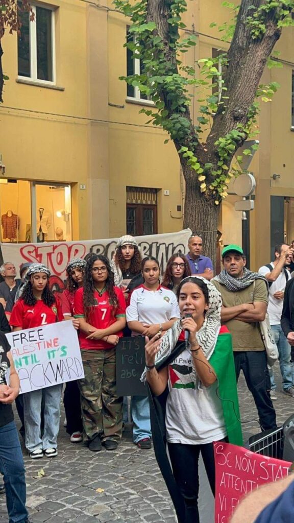 Le parole scandite dal microfono aperto hanno provato a restituire la realtà quotidiana che si vive in Palestina a fronte di una stampa europea, e soprattutto italiana, che in maniera vergognosa sta raccontando quello che succede, trasformando le vittime in carnefici.