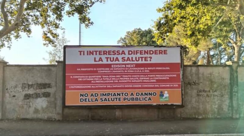 Abbiamo appreso da quanto comunicato dal Comitato di quartiere Comitato Smia-Zona Ind. Jesi che la Edison Next ha chiesto l’accesso agli atti amministrativi per acquisire informazioni circa l’affissione di manifesti, il cui contenuto di critica all’impianto di gestione rifiuti proposto dal Gruppo industriale è stato ritenuto dalla Edison fuorviante e lesivo nei suoi confronti.