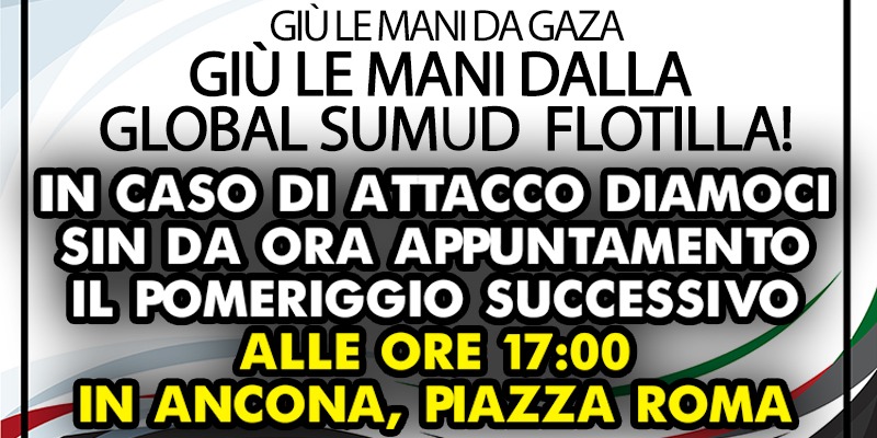 Nelle Marche appuntamenti nelle principali città della regione, giovedì ad Ascoli Piceno e nella mattinata di sabato a Pesaro, Fabriano e Macerata. Prima della grande ‘piazza dell’agitazione permanente’ di Ancona nel pomeriggio. Una piazza con decine di interventi, che ha ascoltato anche le voci di chi in questi giorni continua a mobilitarsi nel resto d’Italia, dai porti di Genova e di Ravenna fino all’aeroporto di Torino, con un collegamento in diretta con chi si trova a bordo della Flotilla.