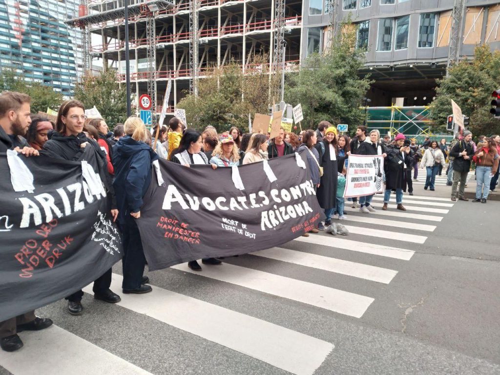 A Bruxelles manifestazione nazionale contro le politiche del governo “Arizona”, una coalizione con baricentro marcato a destra dei partiti MR, Les Engagés, N-VA, Vooruit e CD&V.