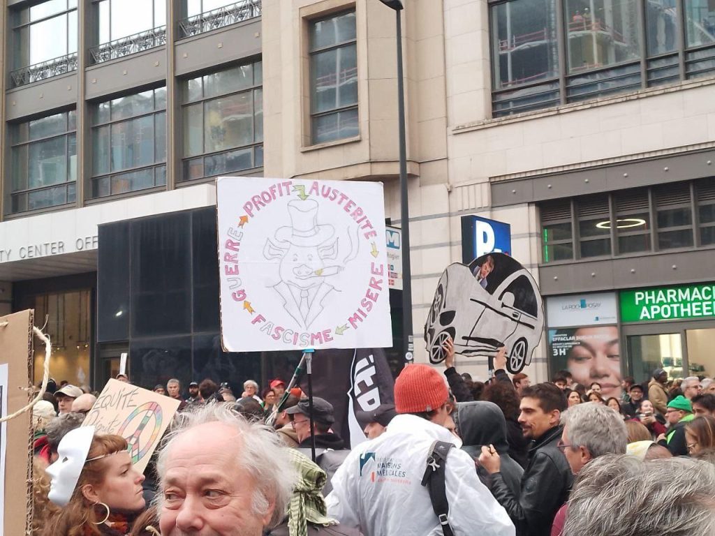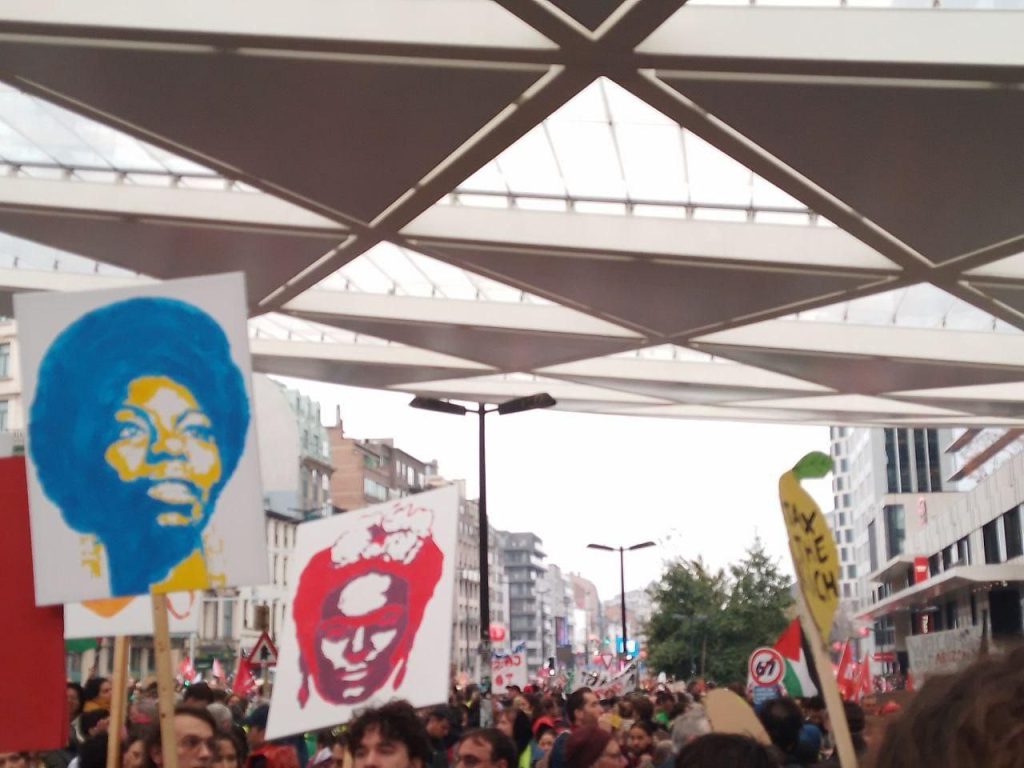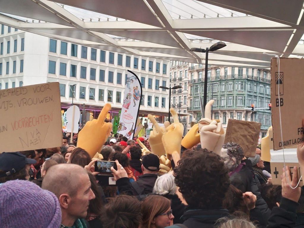 La manifestazione di Bruxelles si è presa le vie del centro città. L’enorme corteo si è mosso molto lentamente, dalla Stazione Nord alla Stazione Sud, attraversando il centro città.