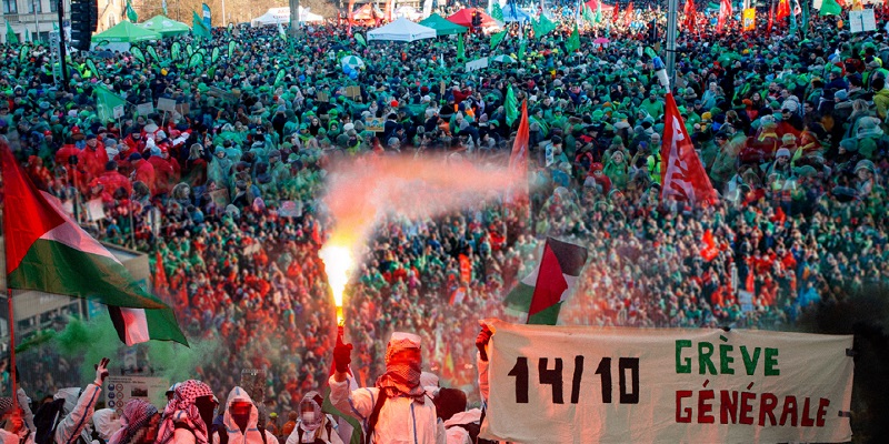 A Bruxelles manifestazione nazionale contro le politiche del governo “Arizona”, una coalizione con baricentro marcato a destra dei partiti MR, Les Engagés, N-VA, Vooruit e CD&V.