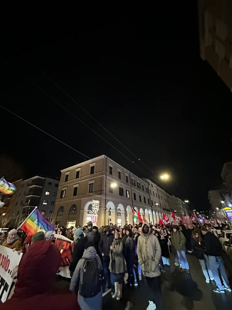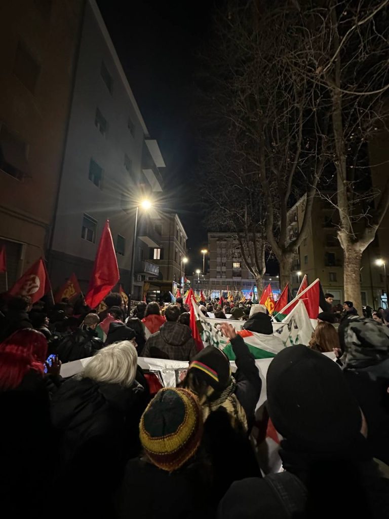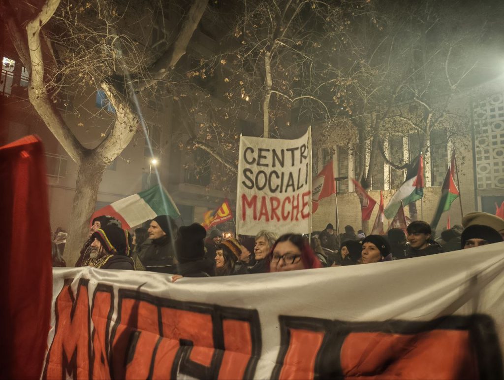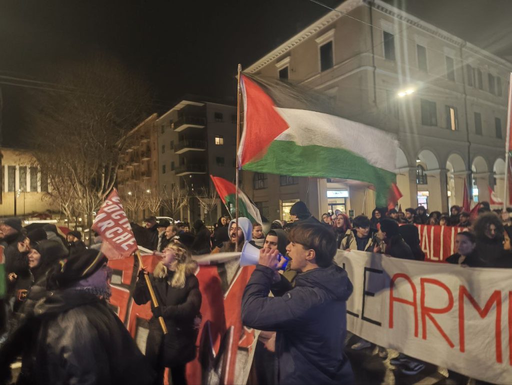 Un migliaio di persone ha attraversato il porto di Ancona in corteo, riappropriandosi di un’area blindata e sottratta alla città. Un risultato importante e significativo, oltre ogni retorica. Una piazza che ha visto una presenza giovanile e studentesca di rilievo al fianco delle realtà sociali e politiche della regione. Una mobilitazione in piena continuità con le lotte che nelle ultime settimane e negli ultimi giorni stanno attraversando il nostro paese e che parla direttamente al governo e ai suoi tentativi sistematici di chiudere ogni spazio di agibilità politica e sociale ai movimenti e alla loro capacità autonoma di lottare e non di testimoniare, di sabotare gli ingranaggi della guerra e non di essere spettatori passivi.