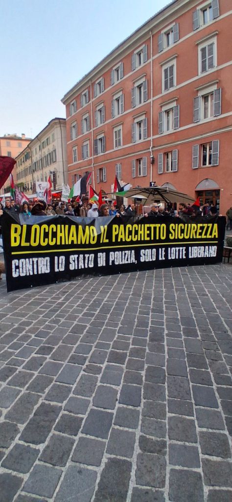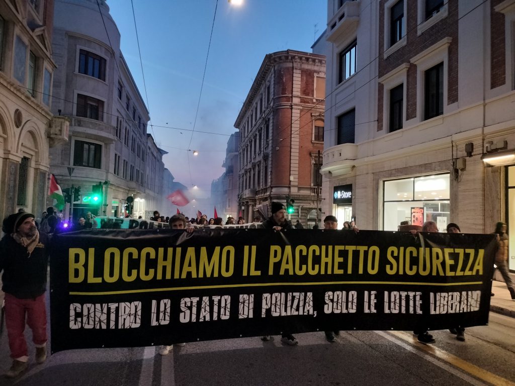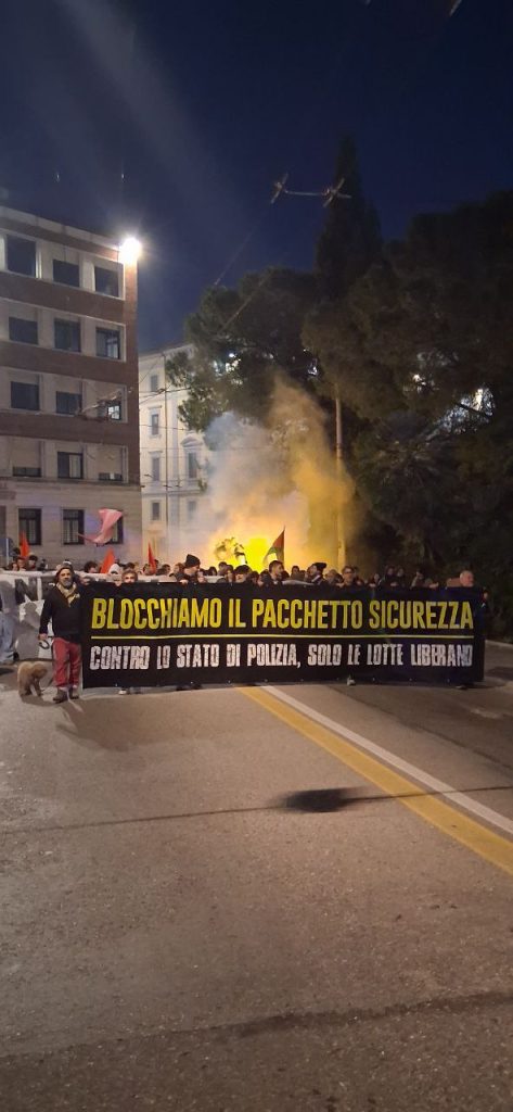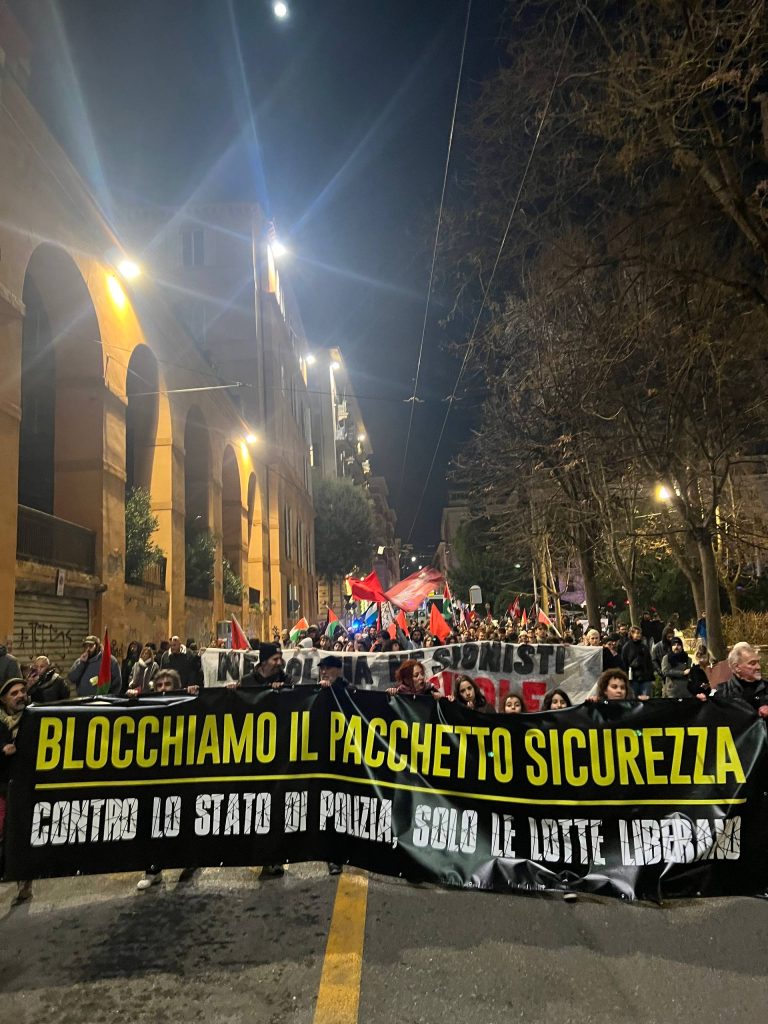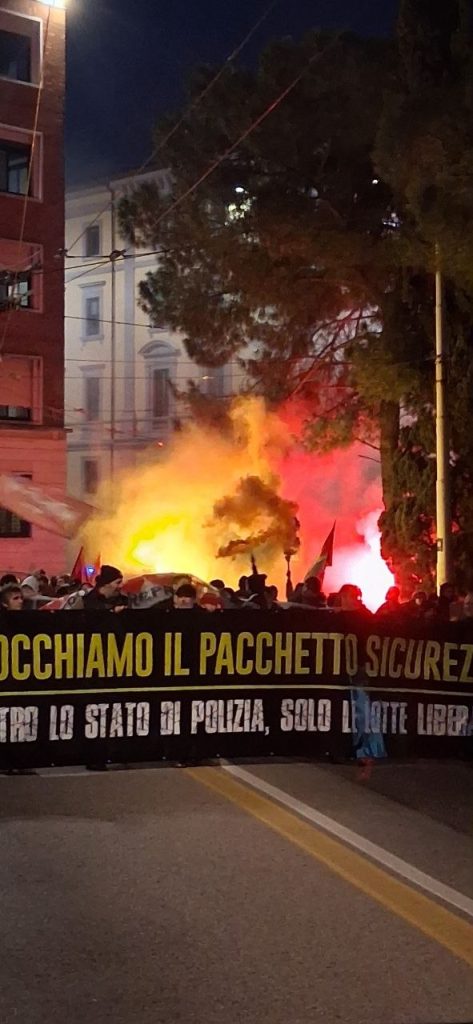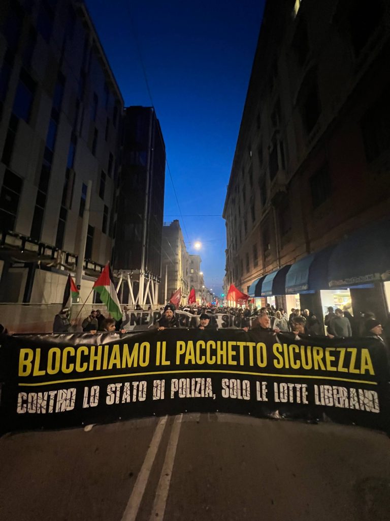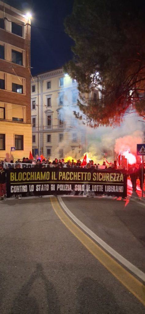 “Blocchiamo il pacchetto sicurezza, Contro lo stato di polizia, solo le lotte liberano”.