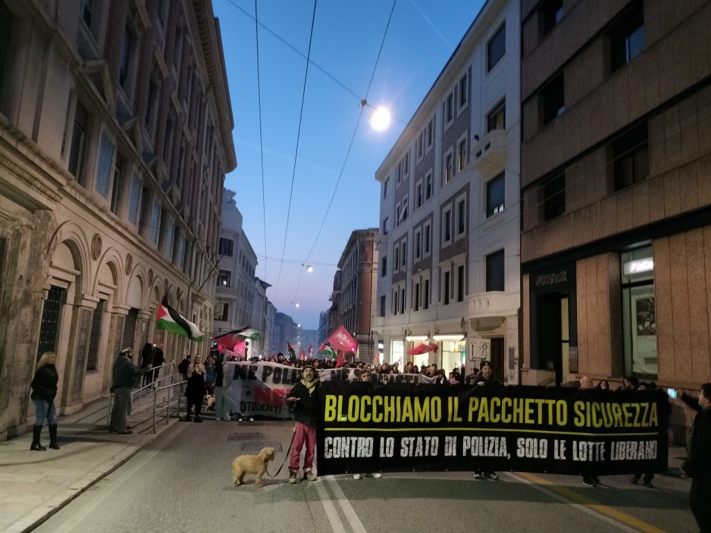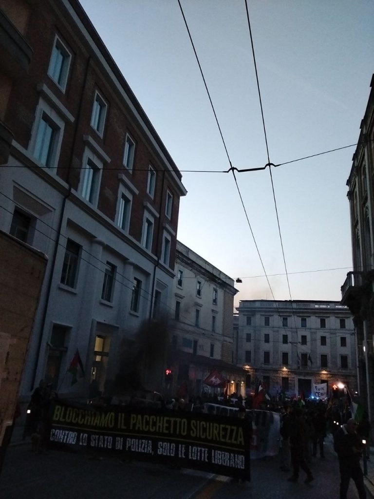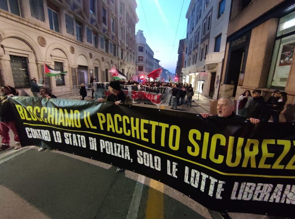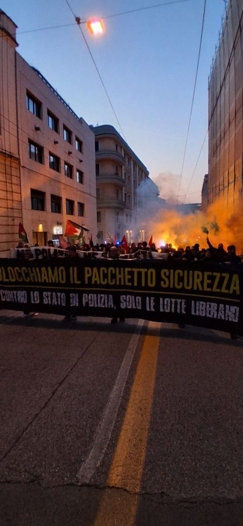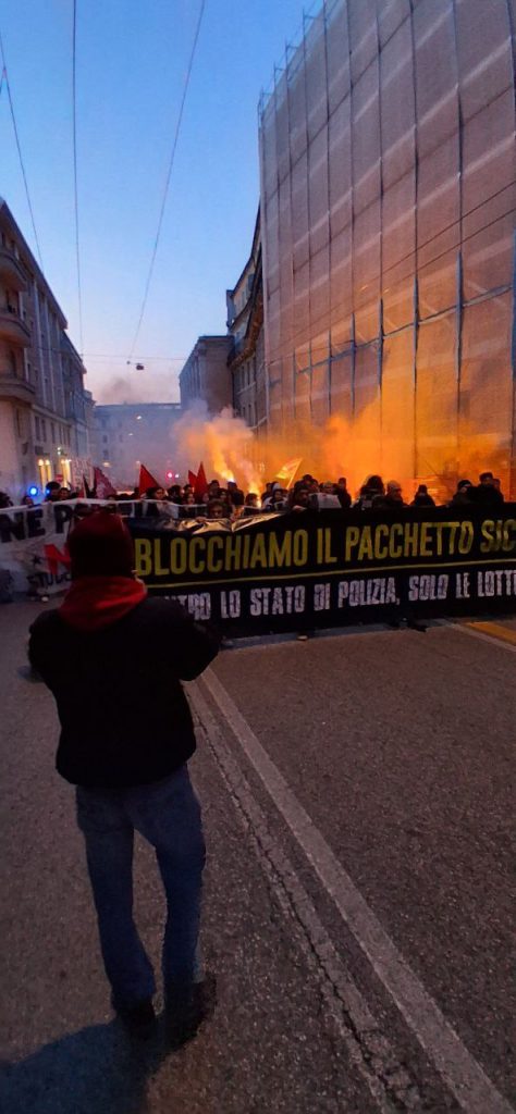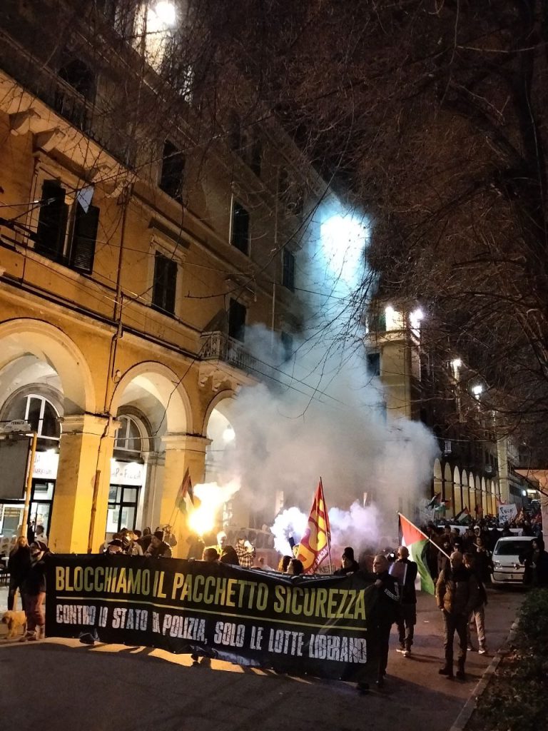 “Blocchiamo il pacchetto sicurezza, Contro lo stato di polizia, solo le lotte liberano”.