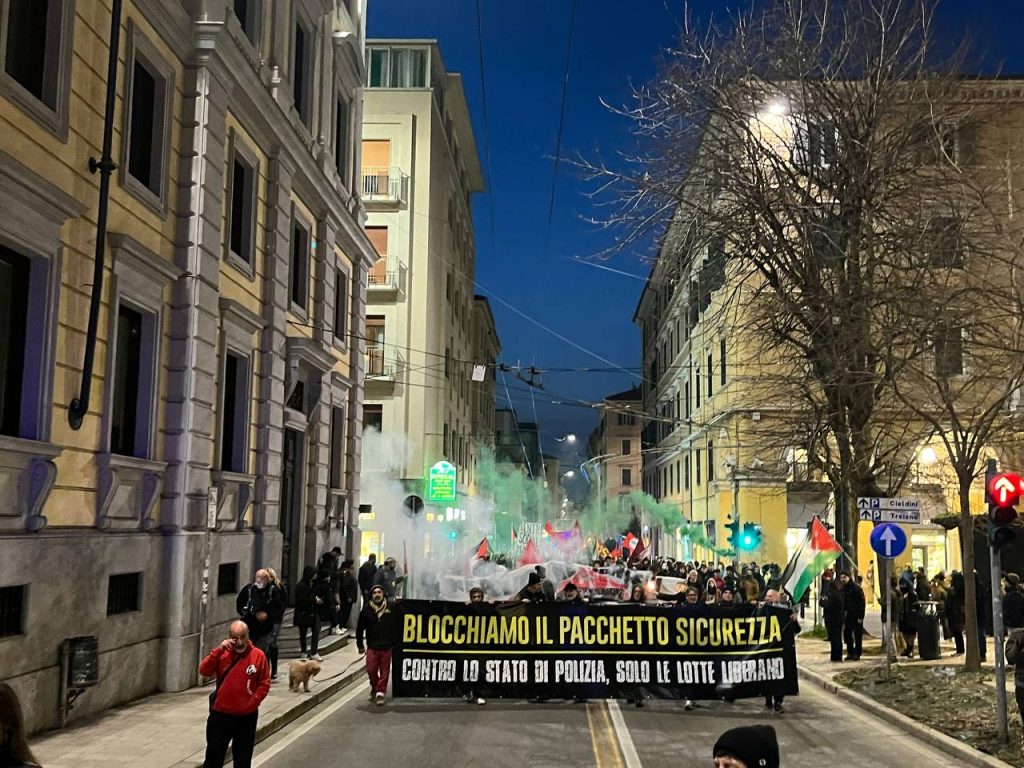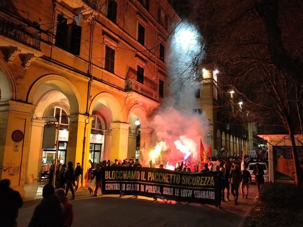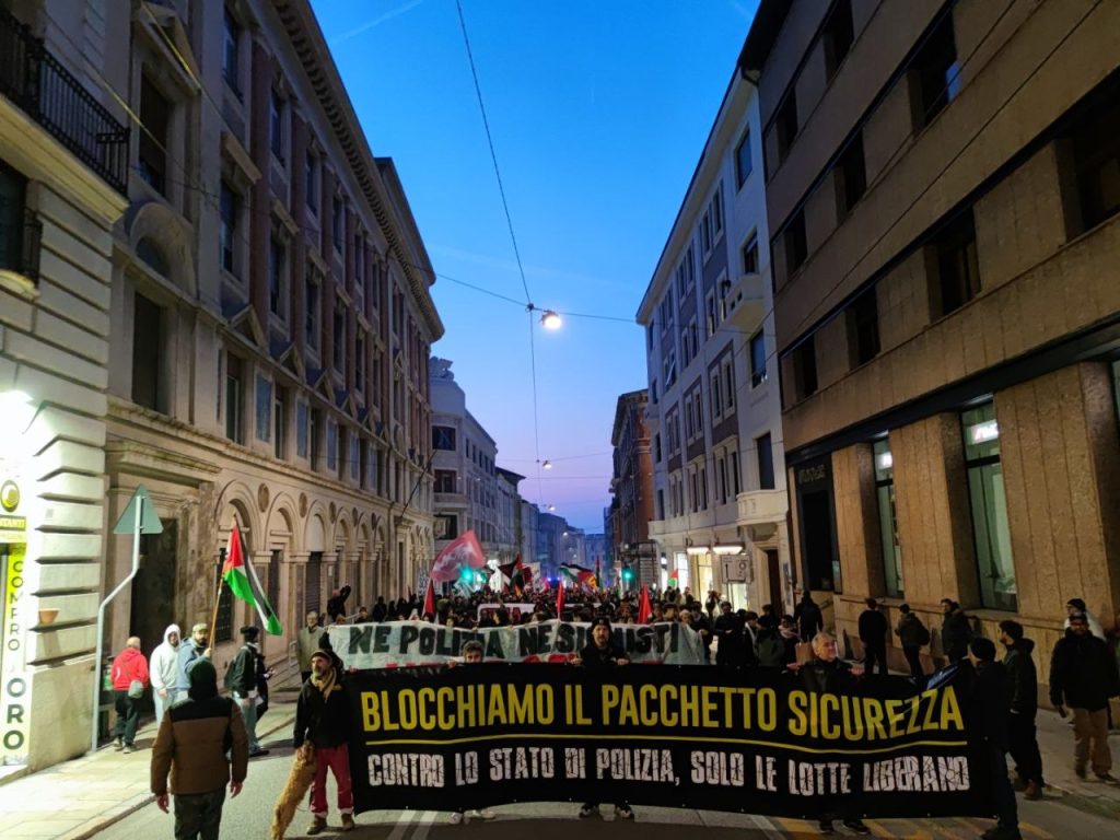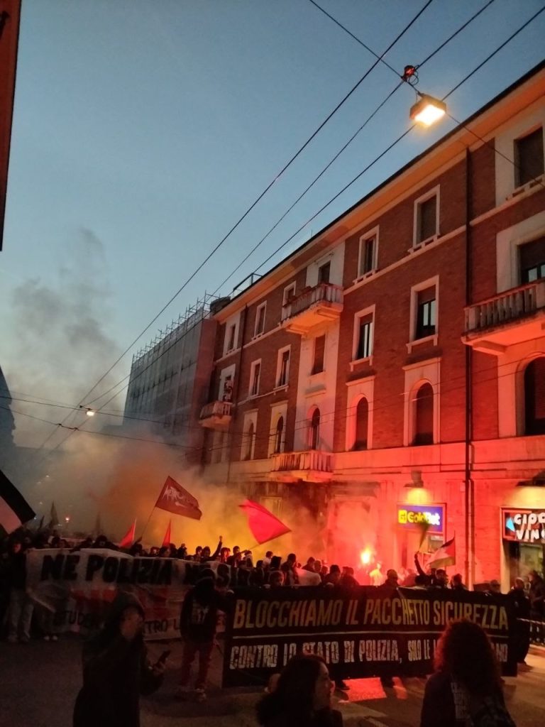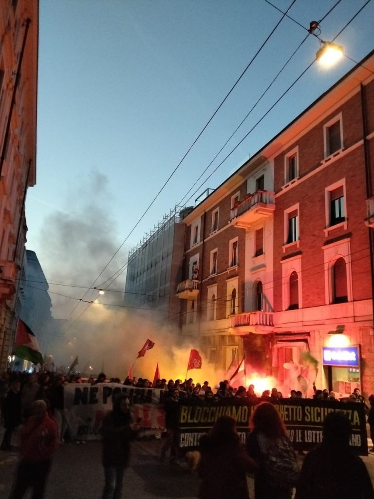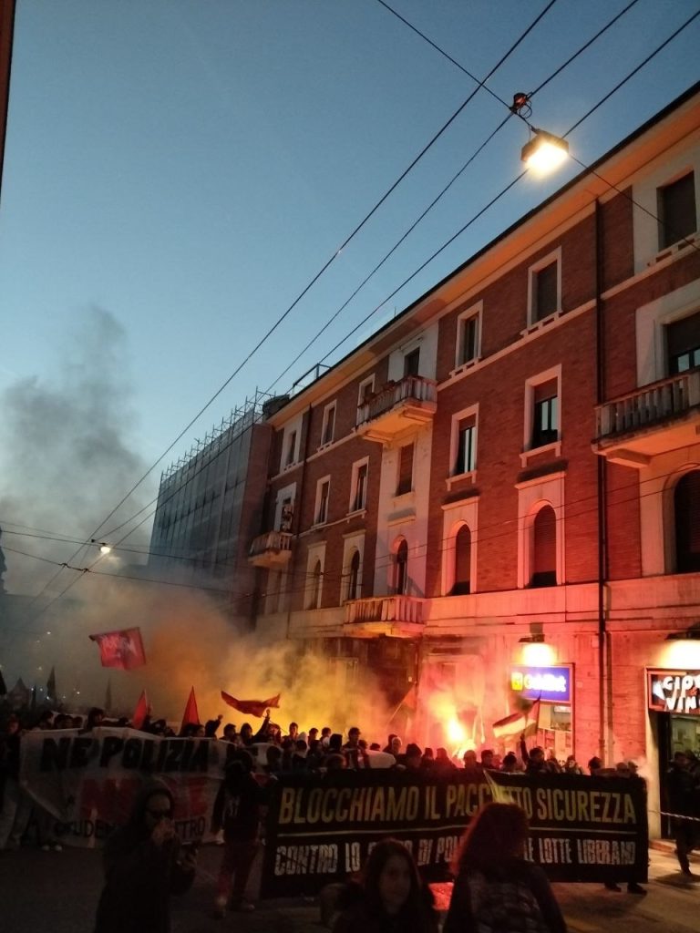 “Blocchiamo il pacchetto sicurezza, Contro lo stato di polizia, solo le lotte liberano”.