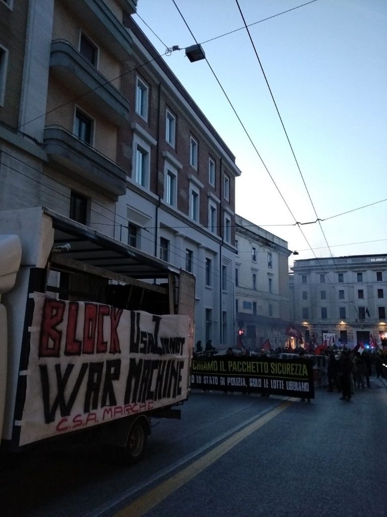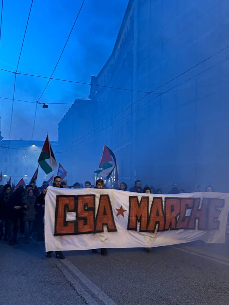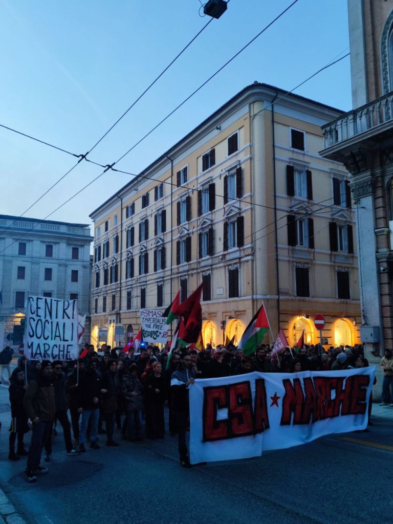 Una giornata di mobilitazione, quella di ieri nella nostra regione, in continuità, anche se con intensità e partecipazioni diverse, con quelle, che da settembre in poi, hanno bloccato Ancona, il suo porto e le sue strade, con una costante comune: volontà e disponibilità a mobilitarsi, dal basso, in autonomia e con forza, contro governi, nazionali e internazionali, che, con complicità attiva ed enormi responsabilità politiche continuano a portarci in guerra, come se niente fosse, e a restringere diritti e libertà ogni giorno.