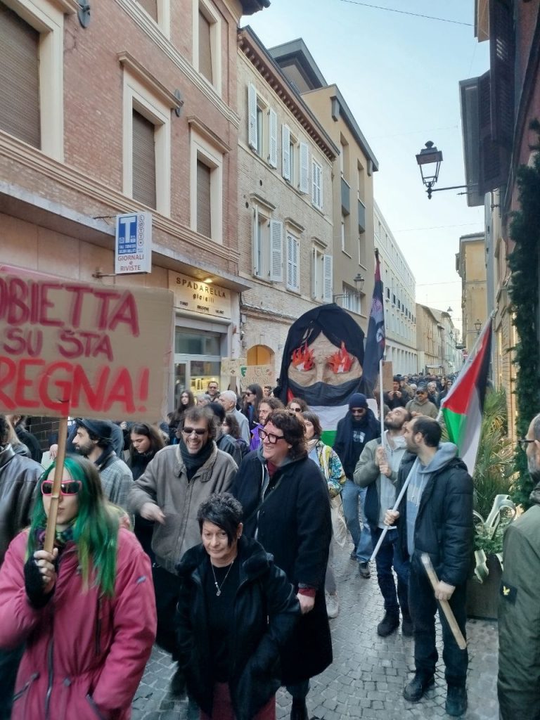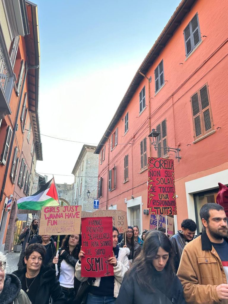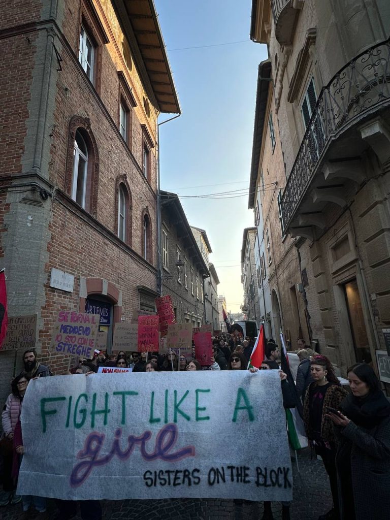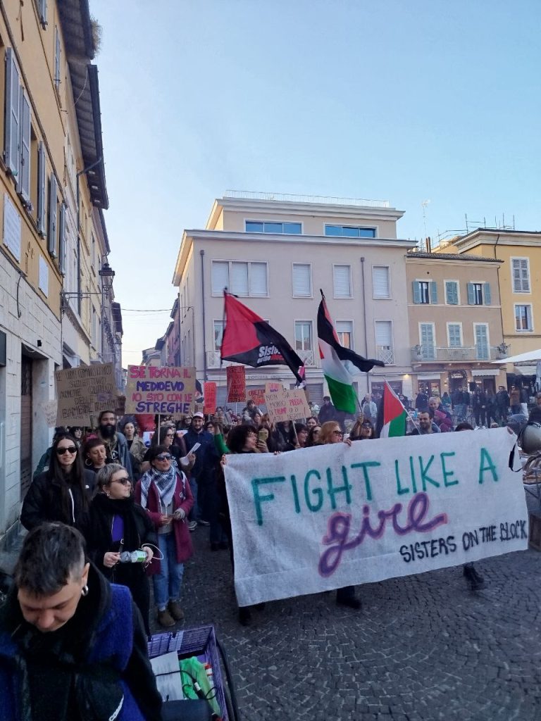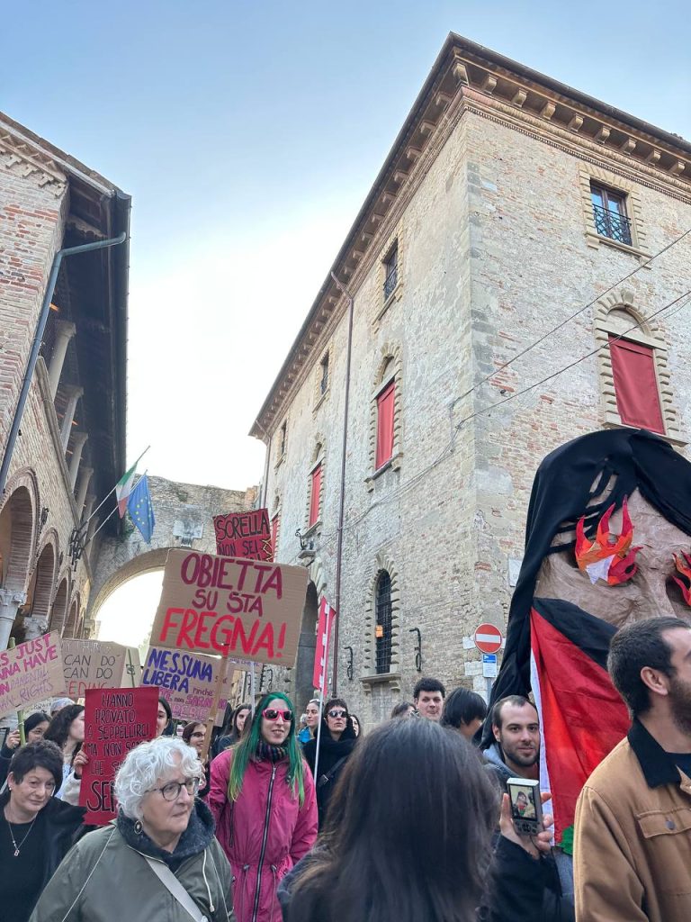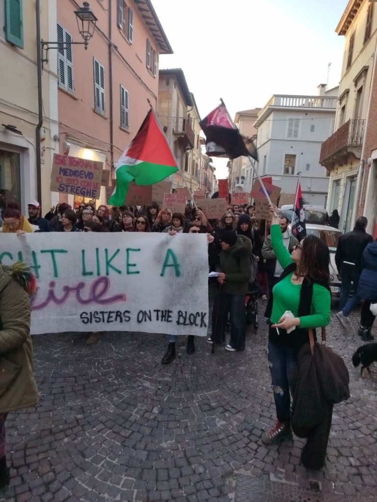 A Fano il corteo si è concluso con un messaggio che è già un’indicazione politica e una consapevolezza precisa: non è certo con l’introduzione di nuovi reati che strumentalizzano di nuovo i corpi delle donne, non è certo con il reato di femminicidio e con l’ergastolo che si batte e combatte la violenza patriarcale.