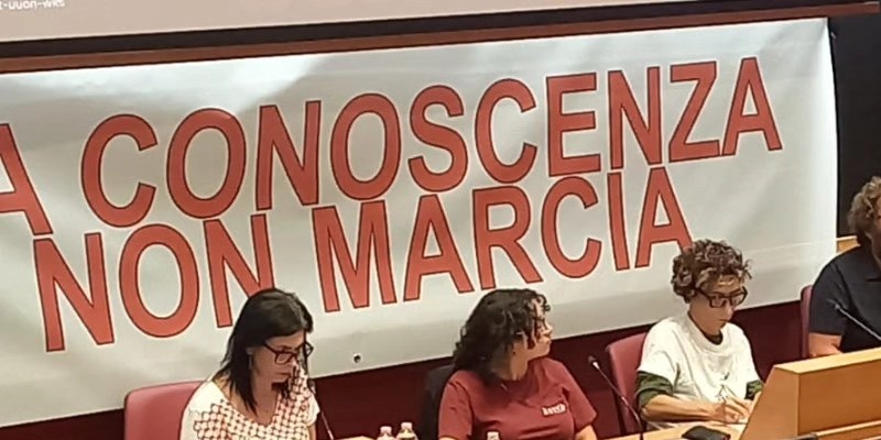 In questo contesto si inserisce la campagna ‘La conoscenza non marcia’, che intende rimettere al centro il ruolo dei luoghi della formazione come spazi di produzione critica del sapere e non come ingranaggi del complesso militare-industriale.