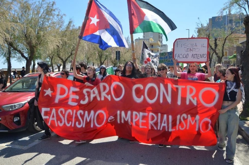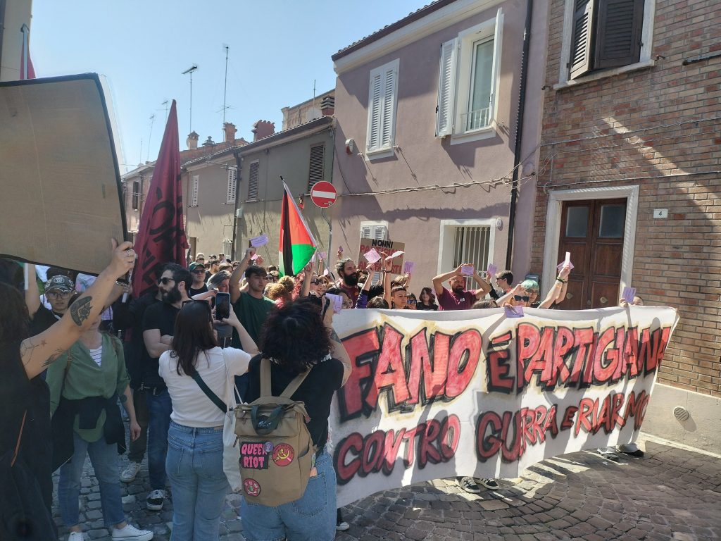 A Pesaro un corteo resistente organizzato dai collettivi antifascisti della città “contro fascismo e imperialismo”, partecipazioni sociali ai cortei cittadini a Fabriano, con il Laboratorio Sociale Fabbri, e a Jesi, dietro lo striscione dello Spazio Comune Autogestito Tnt “Contro guerre e genocidi Noi non ci arruoliamo”.