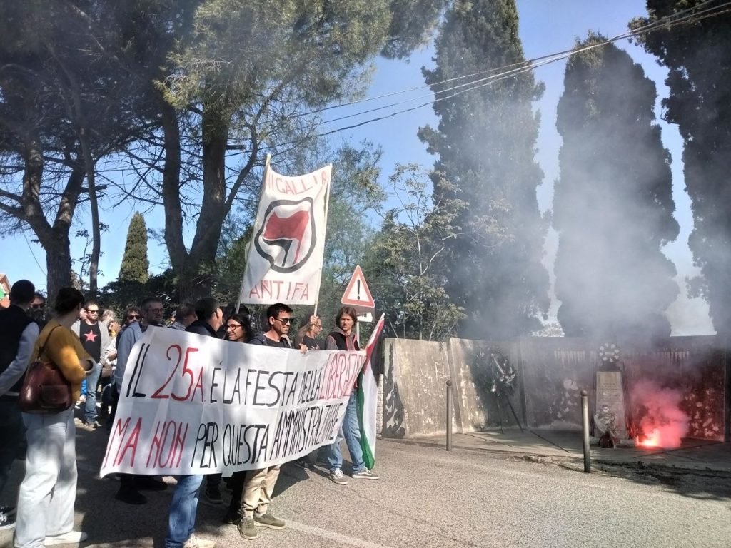 Una giornata densa di appuntamenti militanti nelle Marche, quella dell’81esimo anniversario della Liberazione d’Italia dal nazifascismo. Fin dal mattino momenti di ricordo collettivo dei combattenti partigiani: a Pergola, Squola Spa ha preso parte prima alle celebrazioni ufficiali in piazza IV Novembre e poi recandosi autonomamente in piazzale Marko Petrovic e Carlo Giuliani, davanti al cippo in onore del partigiano jugoslavo della ‘Metaurense’. Lo Spazio Autogestito Arvultura e Senigallia Antifascista si sono ritrovati in località San Silvestro, Senigallia presso la lapide che omaggia Aldo Camoranesi della Brigata Gap di Ancona, dietro allo striscione “Il 25 aprile è la festa della Liberazione ma non per questa amministrazione”, contestando la giunta comunale.