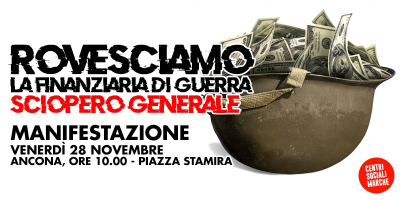L’appello dei Centri Sociali delle Marche per la giornata di sciopero generale del 28 novembre Si vis pacem, para bellum.