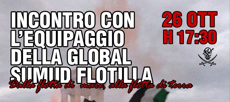 Domenica 26 ottobre alle ore 17:30 ospiteremo negli spazi del JOLLY ROGER un incontro con l’equipaggio della global Sumud Flotilla.