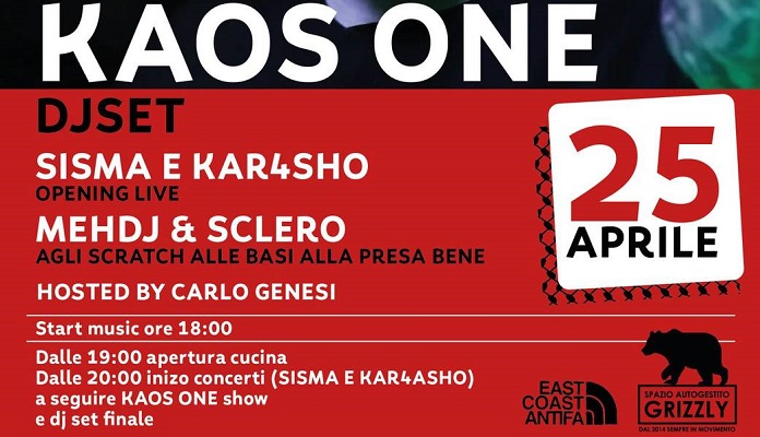Fano (Pu) – Kaos One Live (+ Sisma, Kar4sho Live & Mehdij, Sclero Djset) @ Grizzly